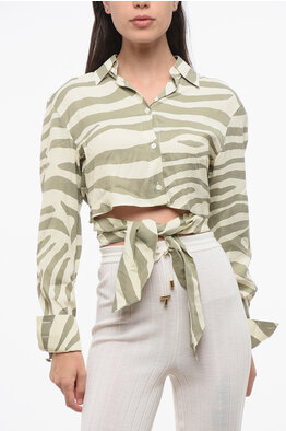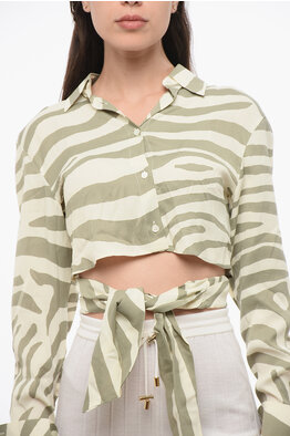 크롭 셔츠 애니멀 프린트 타이 디테일