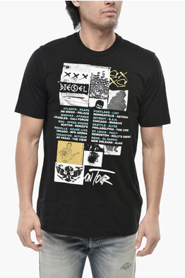 라운드넥 면 티셔츠 T-JUST-ROCK 프린트