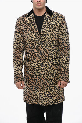 Animal Motif 70'S Maxi Coat with Glitter Collar