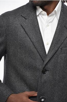 Herringbone Motif Virgin Wool and Cashmere Coat