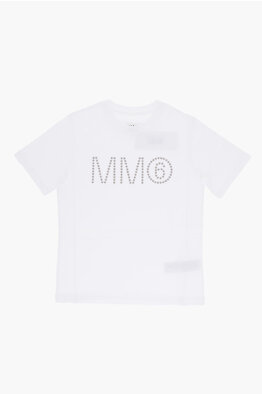 MM6 단색 크루넥 티셔츠 스터드 장식