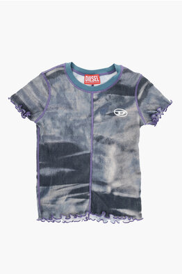 Acid-Wash Effect Ribbed TWAIN Crew-neck T-Shirt