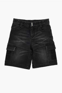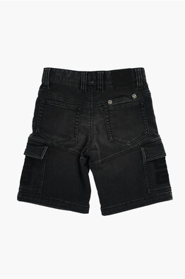Stretch Denim Cargo Jeans with Embroidered Logo