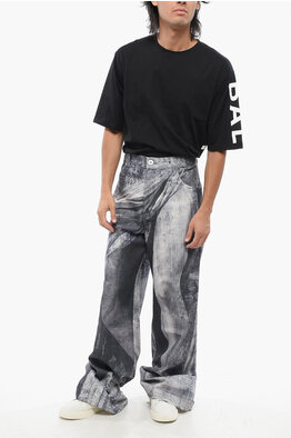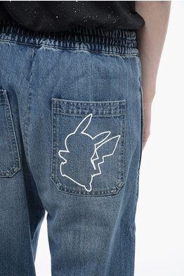 POKEMON Two-Tone Jeans with Cuffed Hem and All-Over Monogram 17cm