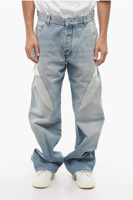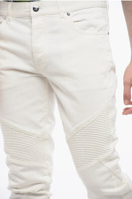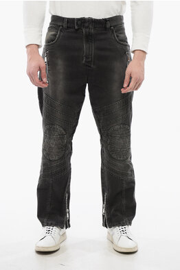 Multipocketed Distressed Denims with Leather Biker Inserts 14cm