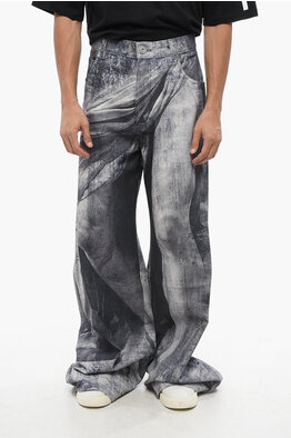 Acid Wash Effect Loose Fit Jeans with Rhinestone 28cm