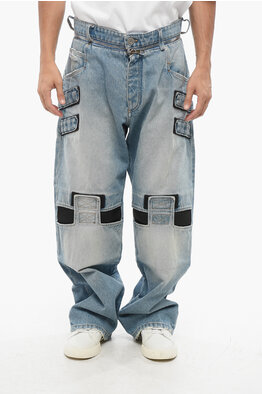 Stretch Denim Biker Jeans with Harness Details 17cm