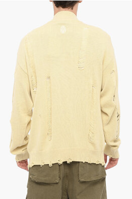 Cashmere Blend Cardigan with Distressed Detail