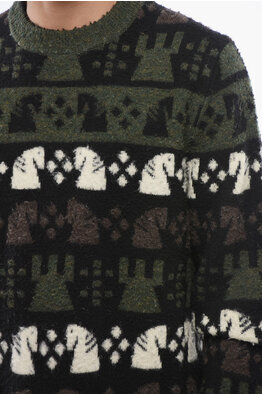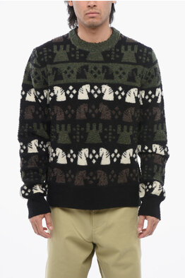 Embroidered Wool CHESS Crewneck Sweater