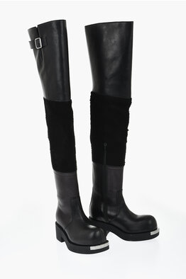 MM6 가죽 무릎위 부츠, 5cm 스웨이드 인서트