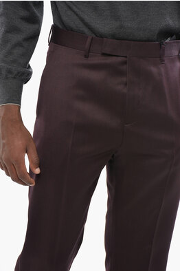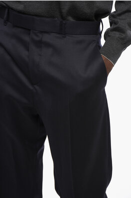 scalloped Hem Virgin Wool Pants with Belt Loops