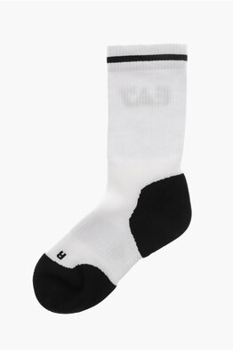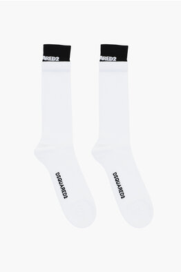 Set 2 켤레 롱 골지 양말 콘트라스트 로고