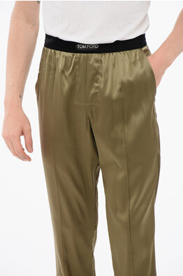 실크 새틴 파자마 팬츠, 벨루어 디테일