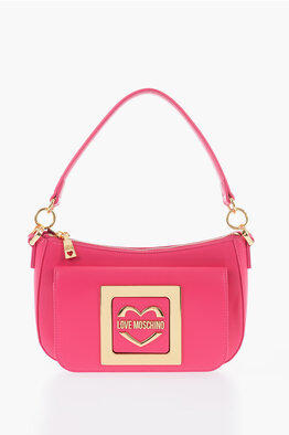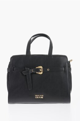Leather Handbag with Logo Buckle