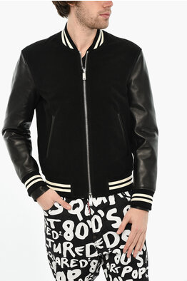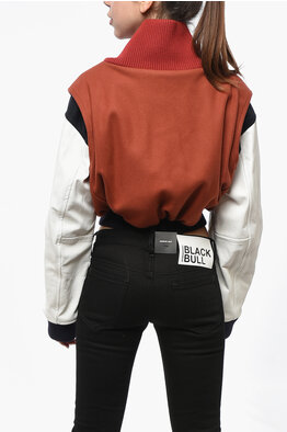 Cropped Varsity Bomber with Leather Sleeves