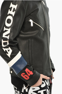 HONDA Hammered Leather Jacket With Logo Button