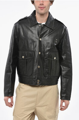 Leather Jacket AVIATOR with Snap Buttons and Maxi Patch Pockets