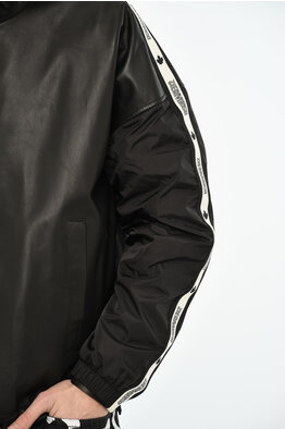 RED TAG Cropped-Fit Leather Bomber EADER with Jersey Details