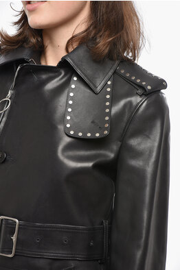 Leather Jacket with Studs and Belt