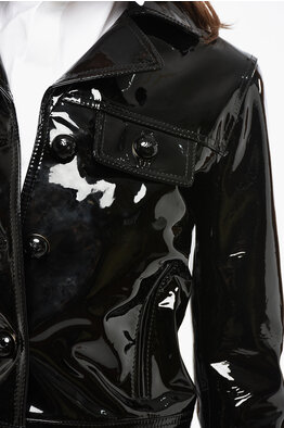 Craquelé Leather Double-Breasted Blazer
