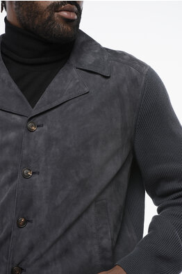 Suede Jacket with Knitted Sleeves