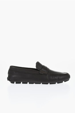 Solid Color Leather Penny Loafers