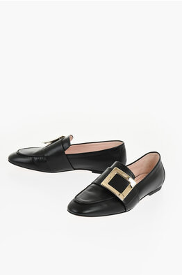 Textured Leather Loafers with Iconic Buckle