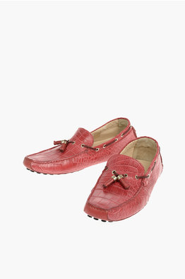 Crocodile Leather Boat Loafers With 24K Gold-Finished Tassels