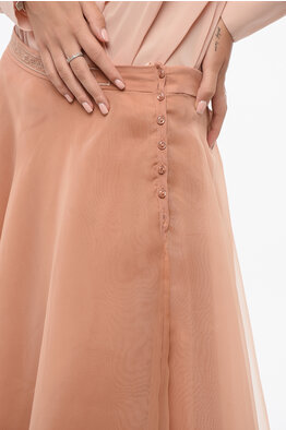 Tartan Motif Longuette Wool Skirt With Size Zips