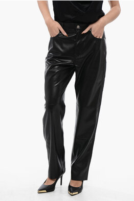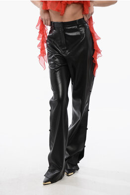 Faux-Leather Trousers FELINA with Side Button Fastening