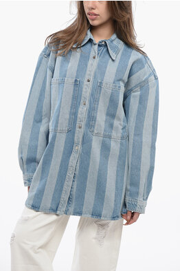 Awning-Striped Denim Overshirt BEAUX with Logo Buttons