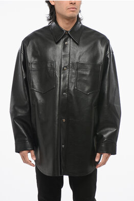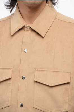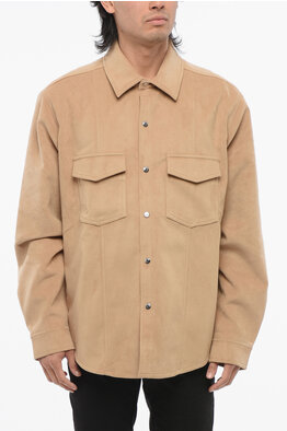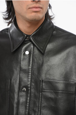 Vegan Leather Overshirt with Double Pocket and Snap Buttons