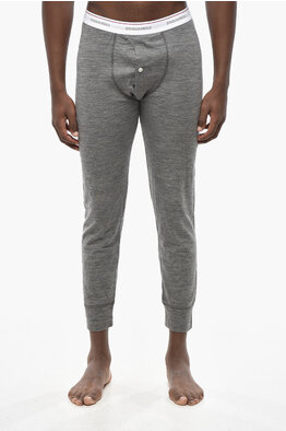 Stretch Wool Pajama Trousers with Logo Elastic Band