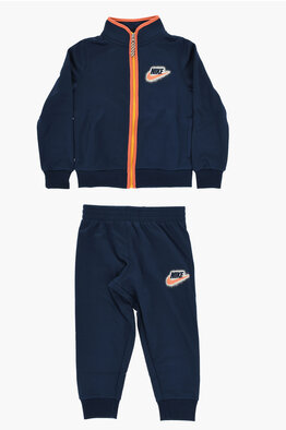 Full-Zip Sweatshirt and Joggers Set in Solid Color with Contrasting Logo