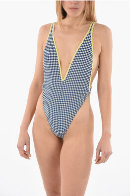 One-Piece Swimsuit BFSW-TESSAH Checked with Deep V-Neck
