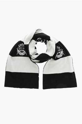 Two-Tone Striped Scarf with Embroidered Logo