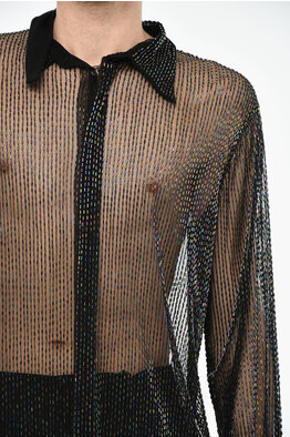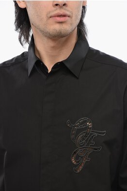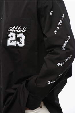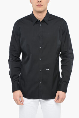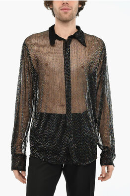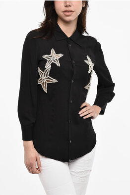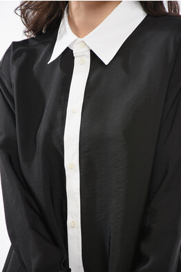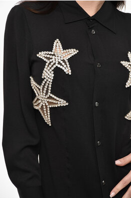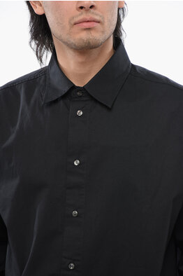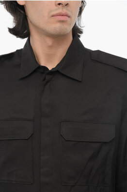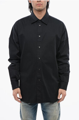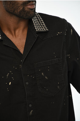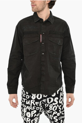 Acid Wash Effect Denim Overshirt with Studs Collar