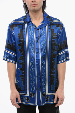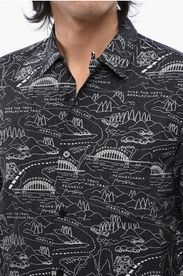 Short Sleeved Boxy Fit Shirts with Jumbled Bolts Print