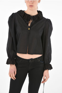 Lace-up SBERTOLI Blouse with Broderie Anglaise
