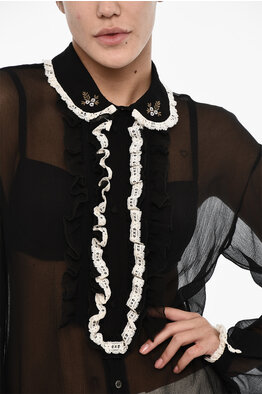 Cotton-Blend Blouse With Jeweled Collar