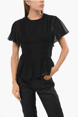 Sheer Silk Blouse with Ruched Neck