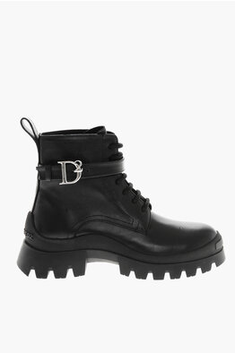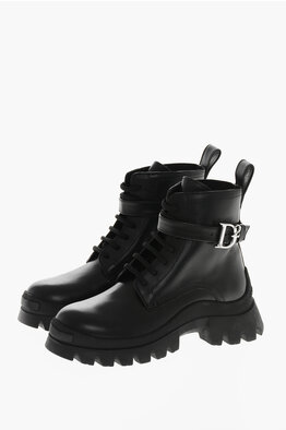Leather Combat Boots D2 STATEMENT With Logo Strap