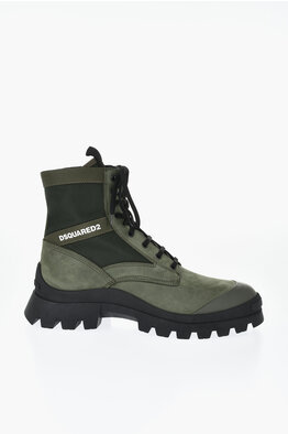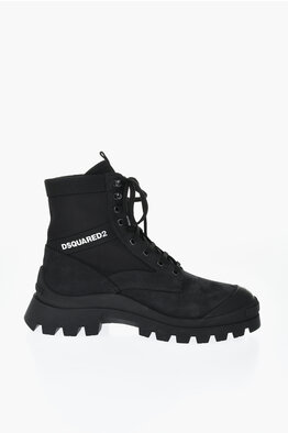 Leather and Nylon Combat Boots with Contrast Logo
