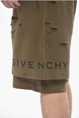 Cotton Shorts with Distressed Effect