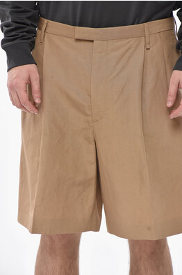 Linen-and-Silk Chino Shorts with Double Pleats