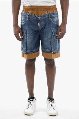 Double-Fabric Shorts With Distressed Design