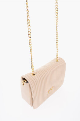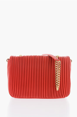 LOVE Pleated Faux Leather Shoulder Bag with Golden Chain