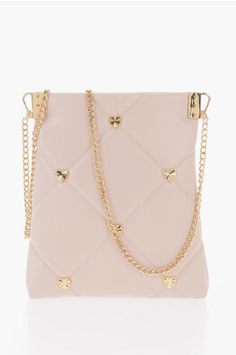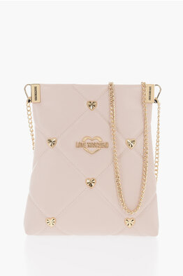 LOVE Quilted Faux Leather Crossbody Bag with Heart-Shaped Jewel Studs
