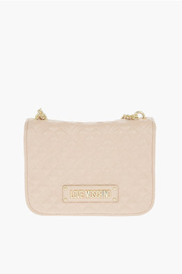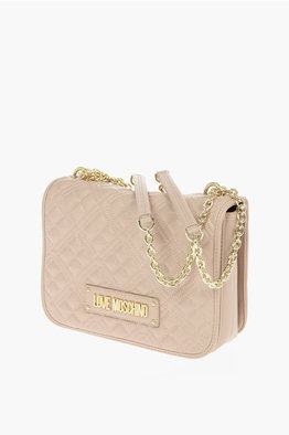 LOVE Faux Leather Quilted Bag with Golden Details and Removable Shoulder Strap
