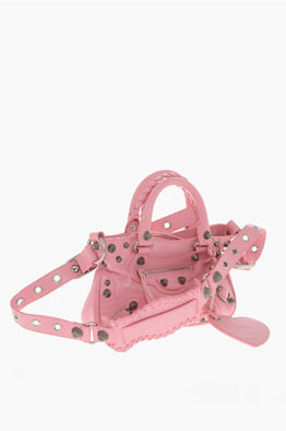 Crinkled Leather LE CAGOLE XS Shoulder Bag with Metal Details and Removable Shoulder Strap